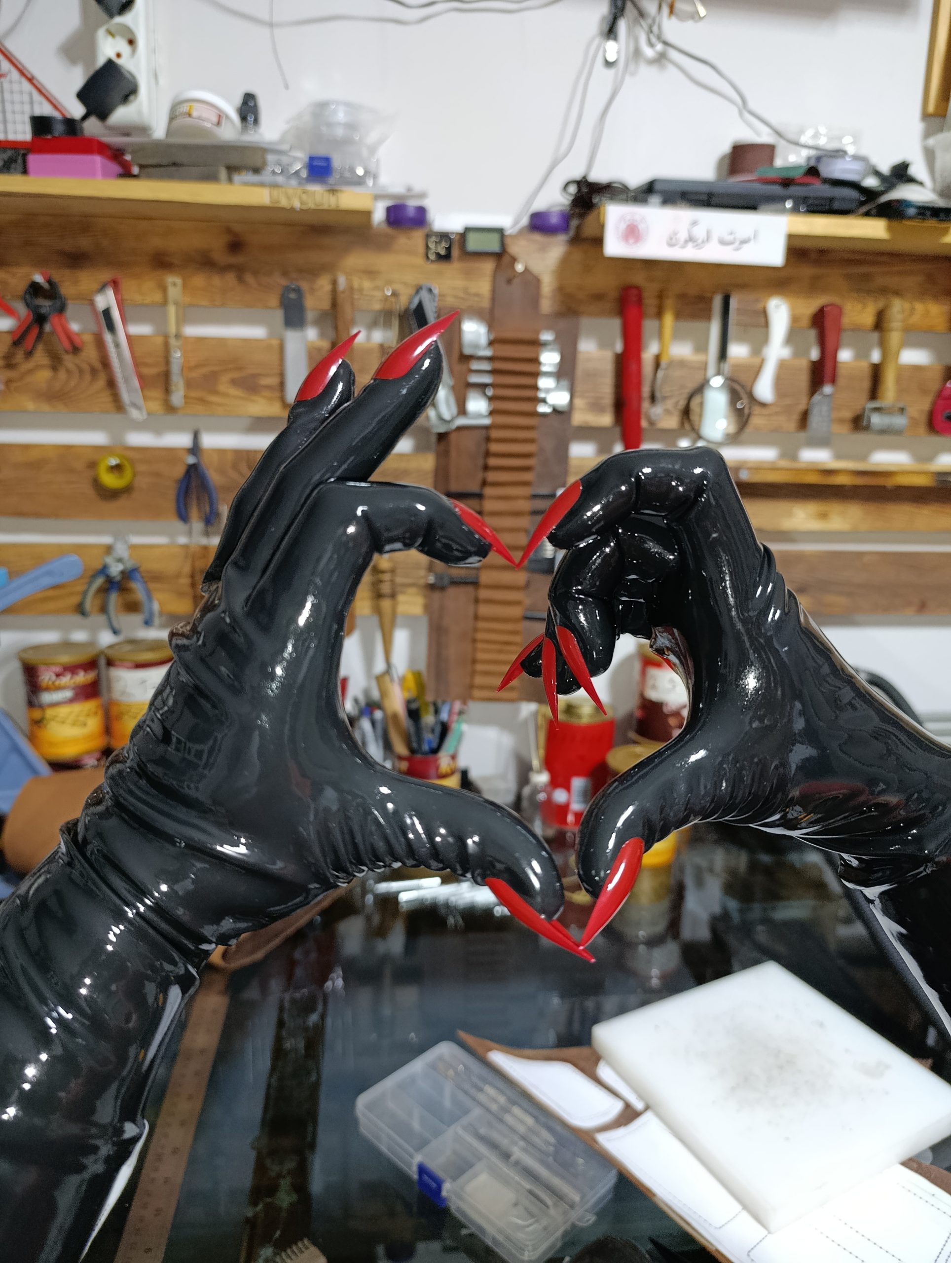 Gerçek Latex Eldiven Uzun Kırmızı Tırnaklı